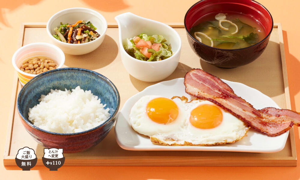 - 目玉焼きモーニング+スープバー(ライスは半量)