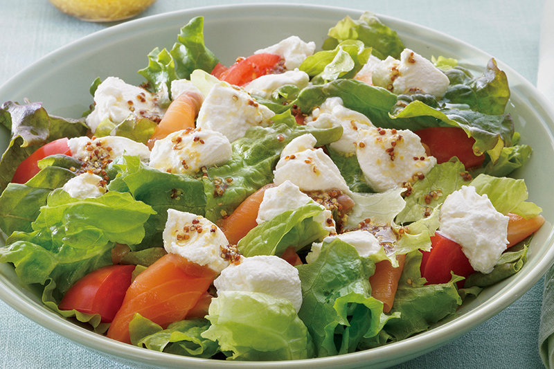 | 腸活 | リコッタチーズサラダ+わかめのサラダ | 発酵食品×食物繊維で腸内環境を整える |