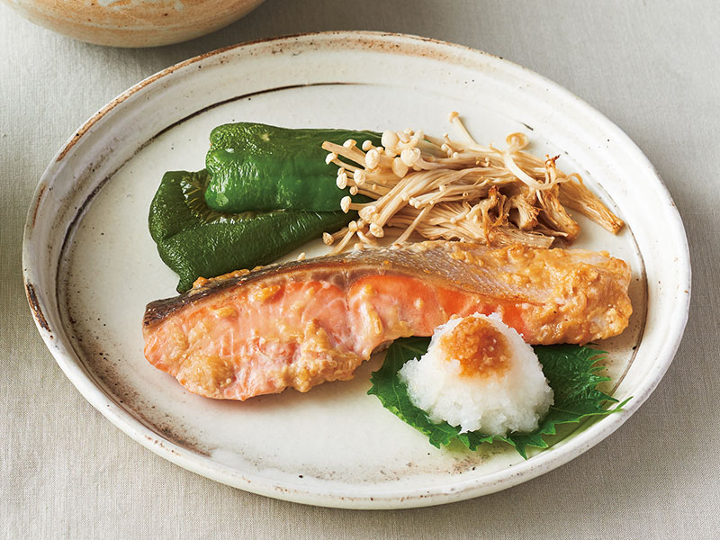 ⑤ 鮭の塩焼き+青菜